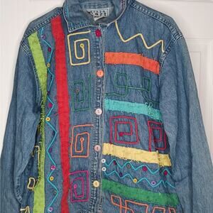 Keren Hart Artsy Retro Denim Jacket Size Medium