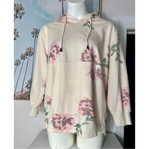 Keren Hart Beige Pink Floral Rose Vintage Tint Pullover Hoodie Plus Size 1X