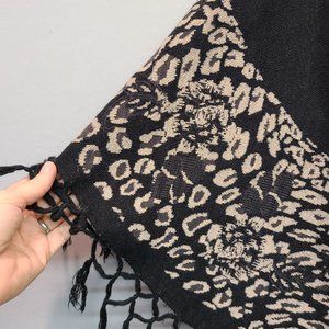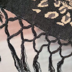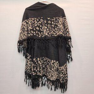 Keren Hart Shawl Poncho Black Leopard Print Tassel Womens Medium