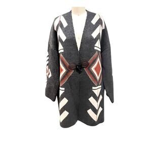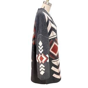 Keren Hart Sweater Womens Large Open Front Aztec Cardigan Boho Knit Acrylic