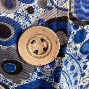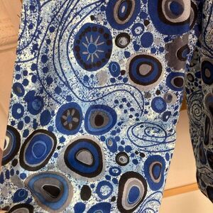 Truly unique and beautiful blue spirals and circles print canvas jacket.