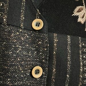 Keren Hart Vintage Vest Wool Blend Embroidered Flowers Black Brown Size M NWT