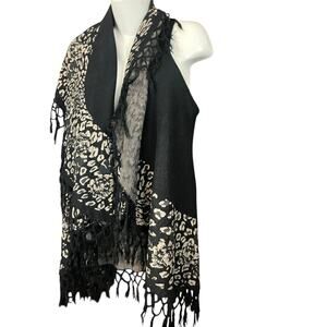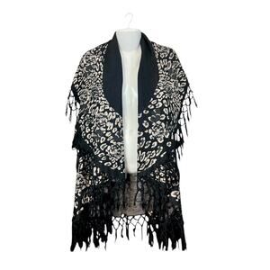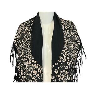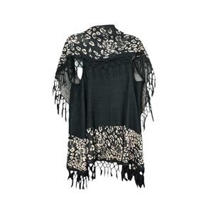 Keren Hart Women's Leopard Print Double Layer Poncho Fringe Sweater Wrap | OSFM