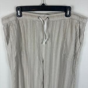 Keren Hart Womens Linen Blend Pull-On Drawstring Straight Beige Striped Pants XL