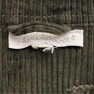 Keren Hart Womens Medium Olive Green Corduroy Ribbed Button Up Cropped Jacket