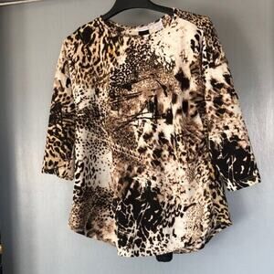 Keren Hart stretchy tunic Top Women’s Size Large back panel Zip 3/4 sleeves