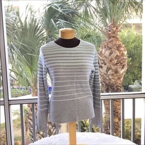 Keren Hart thermal long sleeve striped top Womans large blue and gray side slit