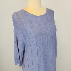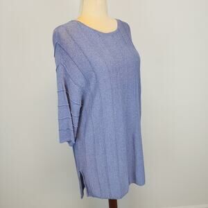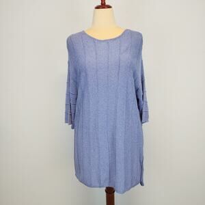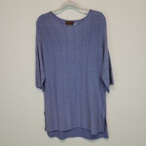 Kerisma Oversized Knit Tunic Top Size S/M Blue Stretchy Round Neck 1/2 Sleeve