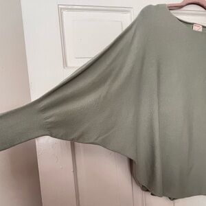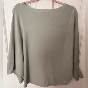 Boat neck top with 3/4 length Dolman sleeves and Curved sweep.