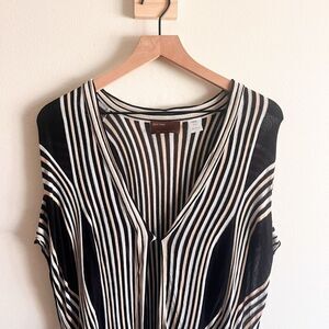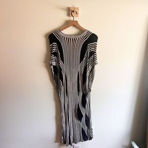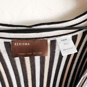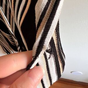 Kerisma Swim Coverup in Black & Tan Stripe. Beautifully luxurious take on an afternoon spent at the beach, pool, or boat. In good condition- one button loop snapped, but you can easily mend or wear open. No holes, rips, or stains. Ours is a smoke free home.