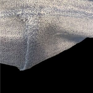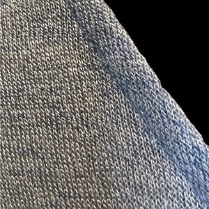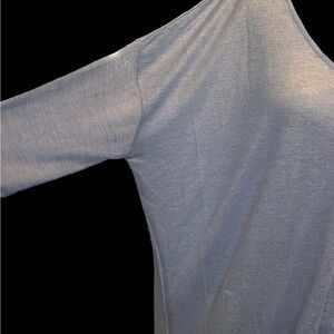 This is the softest sweater I own. It is new with tags. I tried it on and it was not a fit for me, but it is so incredibly soft. I have this in two colors. This being the blue shade interesting three-quarter length sleeves, shoulder underneath the armpit, it is almost if it’s a dolman under the arm. very find attention to detail and craftsmanship. As a bit of a high low shorter in the front a little bit longer in the back. Size is marked as a medium large. I think this has a tendency to run on the smaller side so I can mark this as a medium. 💯% viscose.