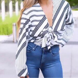 Kerrently The Drop Black White Stripe Knotted Tunic by Courtney Kerr