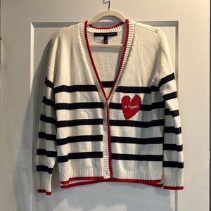 Kerri Rosenthal Aqua Women's Cream and Black Striped Cardigan