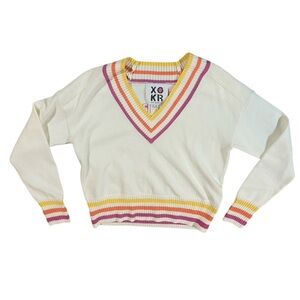 Kerri Rosenthal Get Happy V-Neck Sweater Striped Colorful Soft Sz XS Preppy