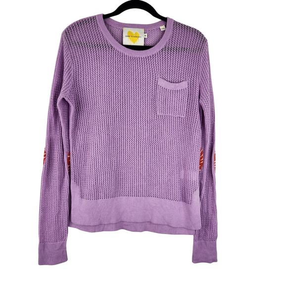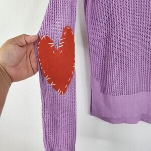 Kerri Rosenthal Purple Knit Heart Elbow Patch Women's Sweater XS Cashmere Blend