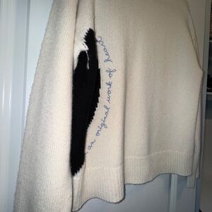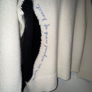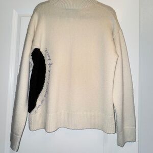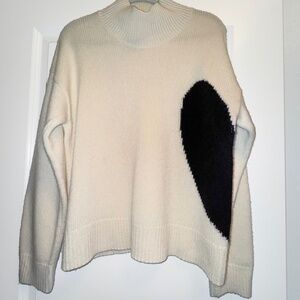Kerri Rosenthal Sweater 100% Cashmere Lucy Imperfect Heart Off Shite color /Black Heart- Hard to find color combination