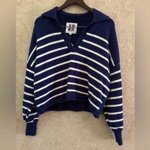 Kerri Rosenthal XOKR Women's Navy and White Striped Hoodie with Heart