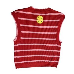 Kerri Rosenthal womens Heart Applique Sweater Vest size Small Red Pink Striped