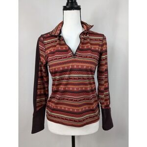 Style: Mock Neck Long Sleeve Stretchy Horse Print Pattern Aztec Southwestern Western Rodeo Riding Clothes Preppy Equestrian Country