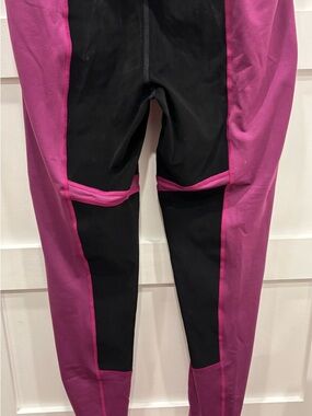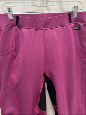 Kerrits Flow Rise Performance Riding Tights in a Wildrose/Magenta color featuring knee patches for grip.