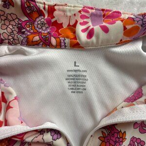 Kerrits Womens Floral 1/4 Mock Neck Cycling Jersey Large Short Sleeve White/Pink