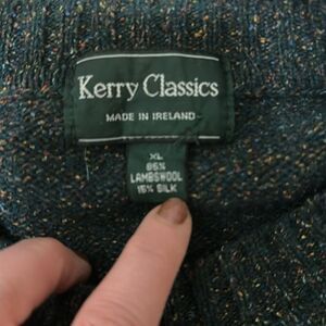 Kerry Classics Made In Ireland Vintage Green Wool Crew Neck Sweater Size XL