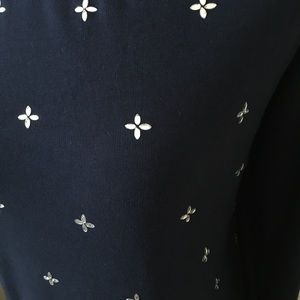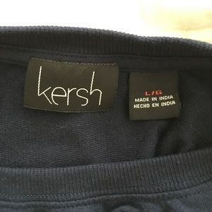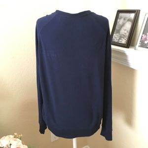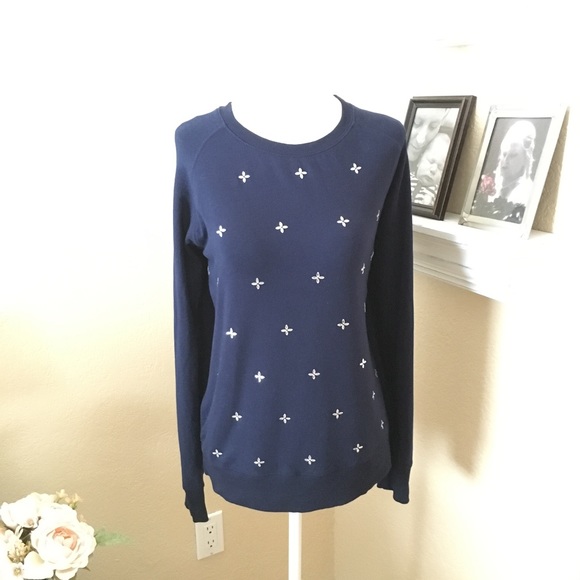 Super soft pull over sweater from Kersh with sparkle gems. Deep navy color, raglan sleeves, sweatshirt style, light cotton/modal/spandex fabric. Approx measurements: bust 42", length 24". Hand wash.