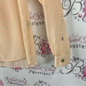 Kersh blouse polka dot dotted orange Peach Sheer Women's Blouse button up
