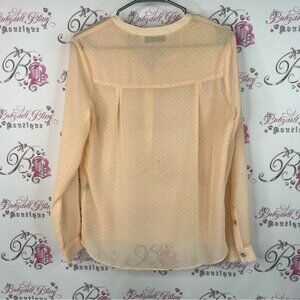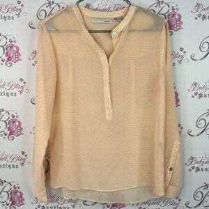 Chic sheer blouse by Kersh. Features a soft peach hue. Ideal for layering or standalone wear. Xs.