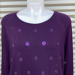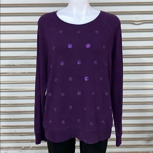 Kersh purple sweatshirt embellished with sequined circles NWOT. This is a medium weight sweatshirt super soft Size XL A52