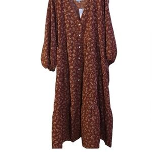 Kervology Plus Size Dipsy Floral Rust and cream Prairie Boho Midi Dress Nwot