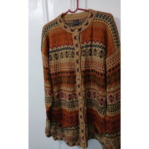 Kessler womensXXL large PERUVIAN ALPACA wool cottagecore sweater button rust tan
