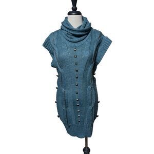 Kessley Short Sleeve Embellished Turquoise Cowl Neck Tunic Sweater S/M