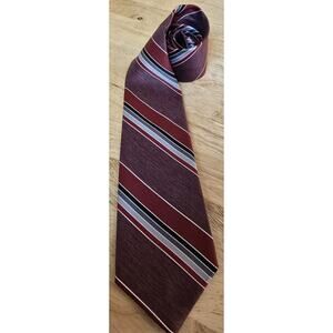 Ketch Mens Stripes Regular Tie Necktie Multi-Color Stripe Burgundy Reds Gray EUC