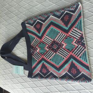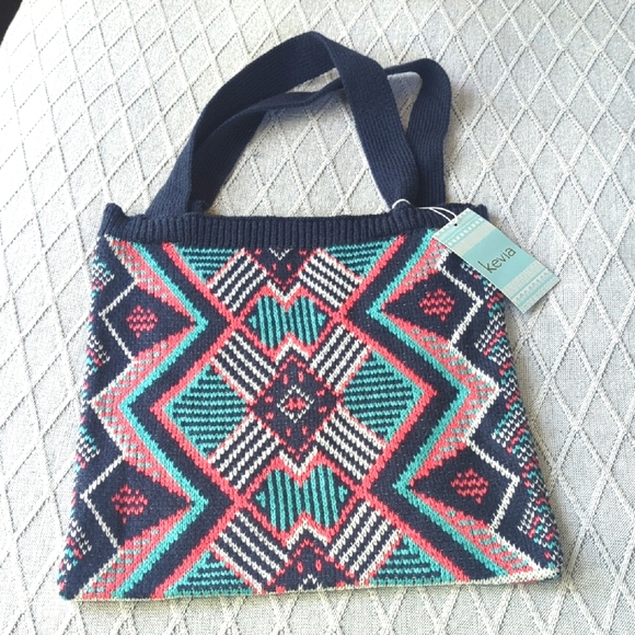 Kevia Multicolor Geometric Knit Square Tote Bag 14"