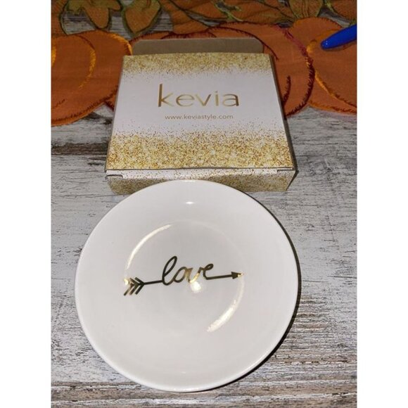 kevia love jewelry dish, trinket holder, gold arrow ring dish, self love gift, jewelry organizer, ceramic ring tray, vanity decor, motivational gift, small jewelry holder, new in box kevia dish