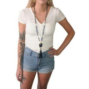 Kevia Vie Boheme Necklace Beads Pendant Statement Geode Tassel New
