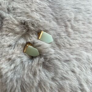 Three-piece earring set in mint green and gold. Includes mint stone drops, sparkling crystal studs, and delicate leaf-motif studs. Lightweight, polished pieces designed for easy everyday styling. Mint green color adds a fresh, feminine touch.