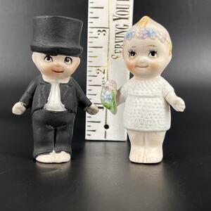 Kewpie Boy in Suit & Girl Wearing Flower Crown Porcelain Bisque, Shackman Japan