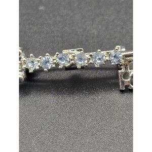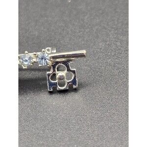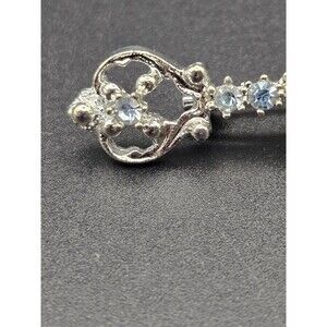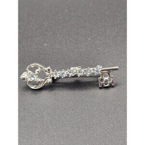 Key Brooch Pin 2” Blue Crystal Rhinestones Silver Tone Vintage