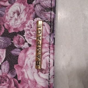 secure zip closure, mini card holder, 2 exterior slip card pockets, 3 cards slots, convenient key ring attachment, yellow gold hardware, purple floral print design, perfect for daily essentials. NWOT