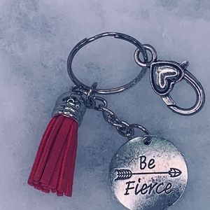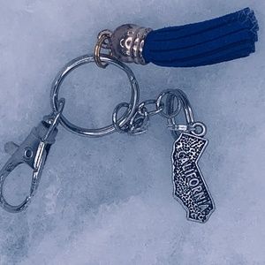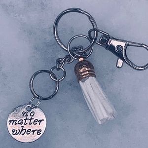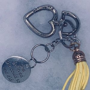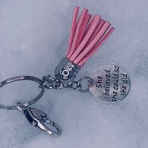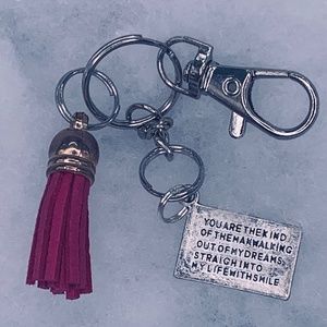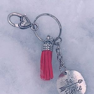 Small key chain with a charm on them and a tassel on it to.