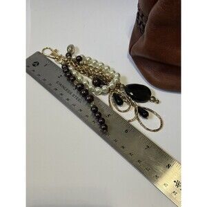 This product is a handmade purse charm keychain featuring repurposed beads, chains and charms. The keychain is made of various costume materials and is designed as a purse or handbag accessory. It attaches to purse straps or keychain rings with an oversized lobster clasp. One