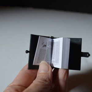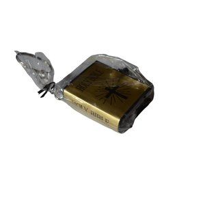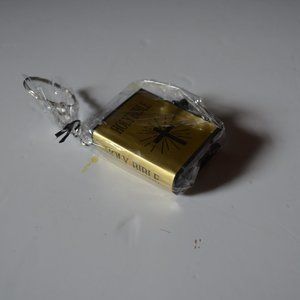 Key Chain Miniature Book Holy Bible with Text Readable Golden 1.75x1.25x0.25'