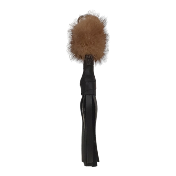 This key chain is really cute. The picture does not do it justice. The top of the key chain is really fluffy it looks like mink to me tan and red of a hint of color.