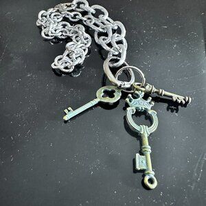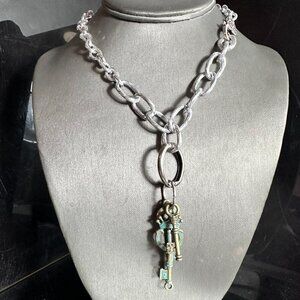 Key FOB Keys Lock Handmade Silver Necklace Choker Punk Rocker Gift NWT Steampunk