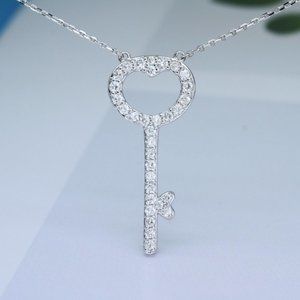 "Key Hollow Heart CZ Dainty Micro Pave Beautiful Necklace for Women, EVGG1060