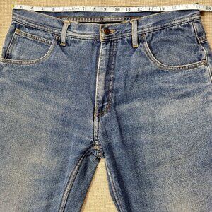 Key Jeans Mens Blue Denim Straight Leg Pants Mid Rise Flannel Lined Size 34X32