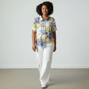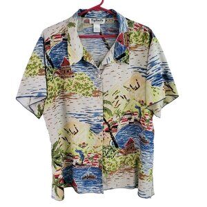 Key Lime Pie Vintage Hawaiian Shirt Tropical Print 100% Rayon Size 1X
