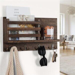 🧿✅ GENEROUS STORAGE CAPACITY - Keep all necessities within reach. This wall organizer features 1 mail slot, 4 double hooks, and 1 floating shelf for ornaments. It can support up to 20lbs of items.